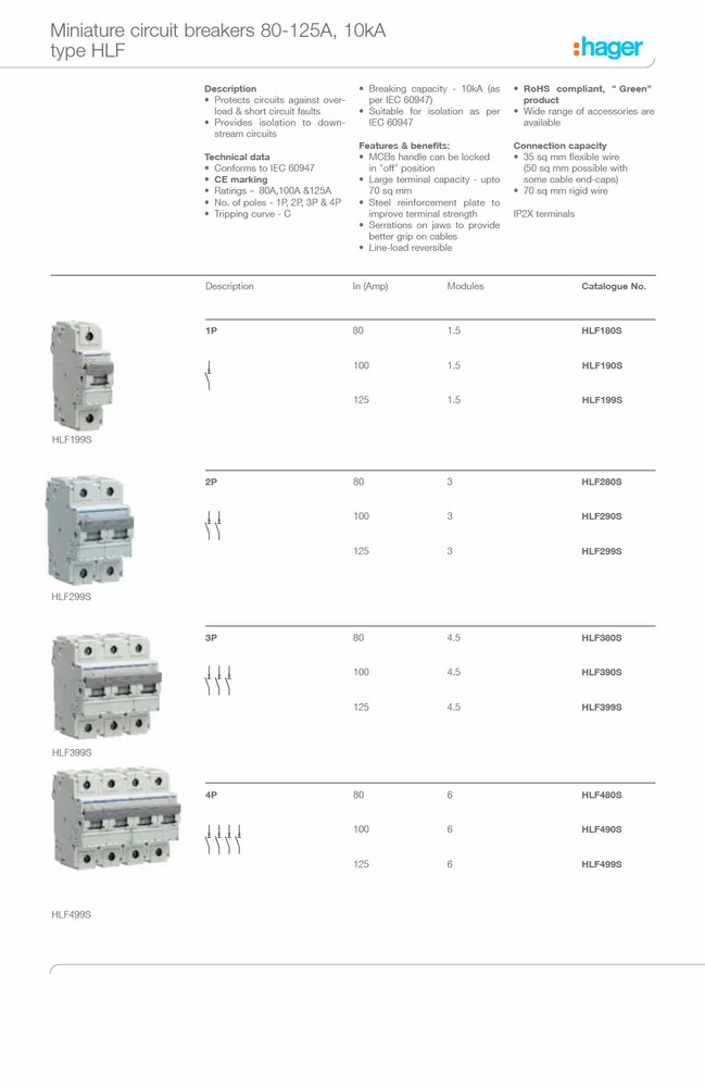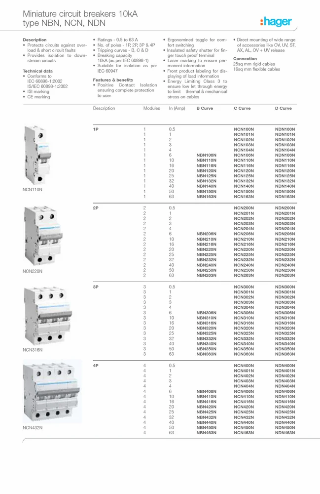 Hager NCN463N C63 MCB Temperature Derating MCBs are designed and calibrated to carry their rated current and to operate within their designated thermal time/current zone at 30°C. Testing is carried out with the breaker mounted singly in a vertical plane in a controlled environment. Therefore if the circuit breaker is required to operate in conditions which differ from the reference conditions, certain factors have to be applied to the standard data. For instance if the circuit breaker is required to operate in a higher ambient temperature other than 300 C it will require progressively less current to trip within the designated time/current zone,